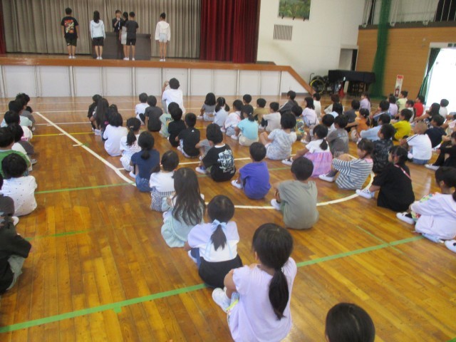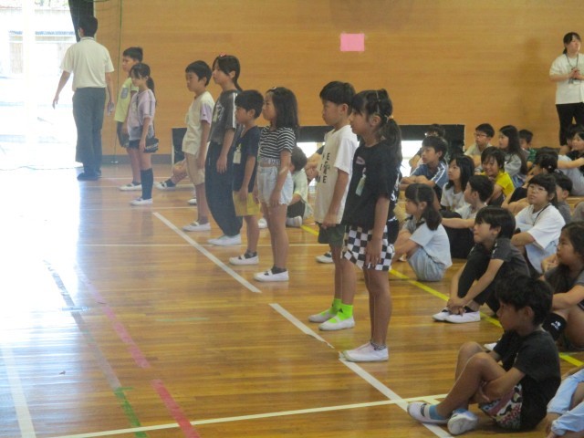 2年生の新学級委員はみんなのお手本として、真剣に校長先生のお話を聞いていました。
