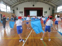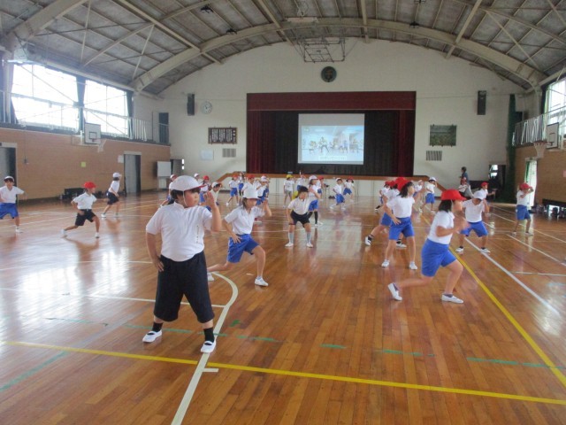運動会の練習が始まりました。交流学年に入っての練習です。今日は動画を見ながら、ダンスを上手に踊ることができました。