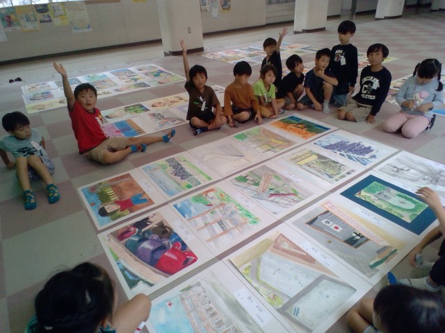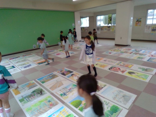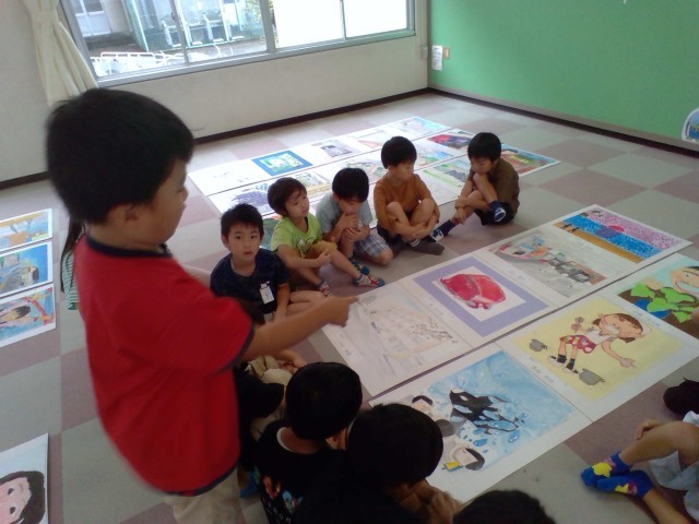 一宮市子ども作品展で選ばれた各校の代表作品が巡回してきました。みんなで自分が「好きだな。」と思った作品を紹介し合いました。