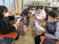 これまでに学習した面積の求め方を利用して、複雑な形をした面積を求めました。仲間と教え合い、解ける問題を増やすことができました。
