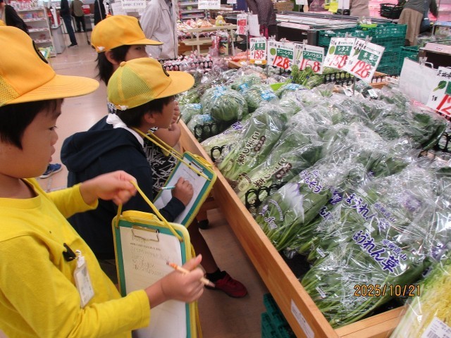社会「店で働く人」の学習のまとめとして、産直広場に見学に行きました。