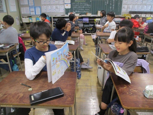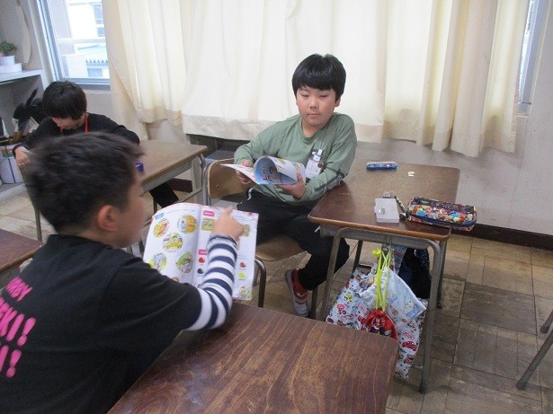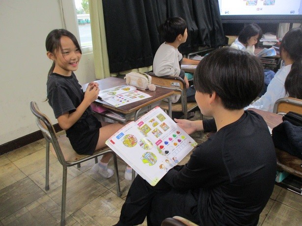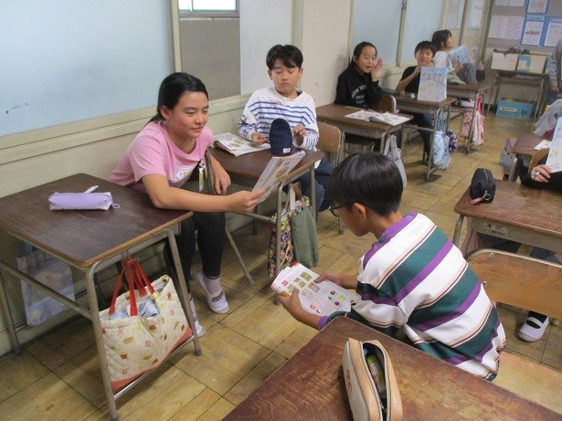 英語の時間に、看板当てクイズをしました。看板に含まれるアルファベットを質問し、どんな単語になっているのかを推理しました。