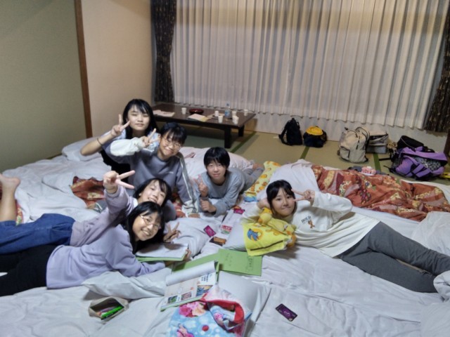 1日の振り返りをしたり、カードゲームをしたり、歯磨きをしたり、部屋での時間を楽しんでいます。