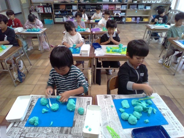 10/24 1年生 図工の授業「いっしょにおさんぽ」