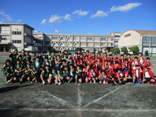 ソーラン節の練習ではっぴを着て踊りました。気持ちが一層引き締まり、一生懸命踊ることができました。最後にクラスごと、学年で写真を撮りました。次はリハーサルのときに着ます。