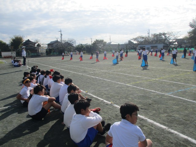今日の運動会練習は、5・6年合同でリハーサルを行いました。6年生のフラッグの演技を間近で観させてもらいました。6年生のかっこいい姿に感動していました。