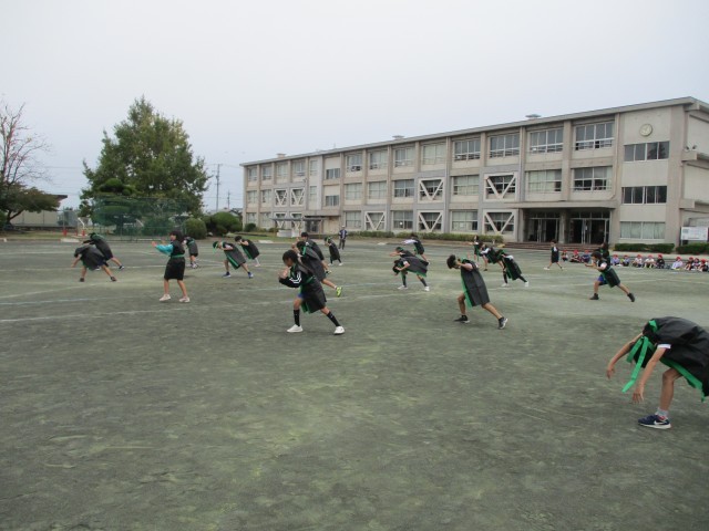 3・4年合同でリハーサルを行いました。本番前にみんなで踊るのはこれが最後ということで、4年生みんなの気合は十分!少し緊張しながらも最後まで力いっぱい踊り切り、見ていた3年生から大きな拍手をもらいました。退場前には列ごとに考えたポーズをしますのでお楽しみに。ぜひたくさん写真を撮ってください。明日は天気が心配されますが、応援よろしくお願いします。