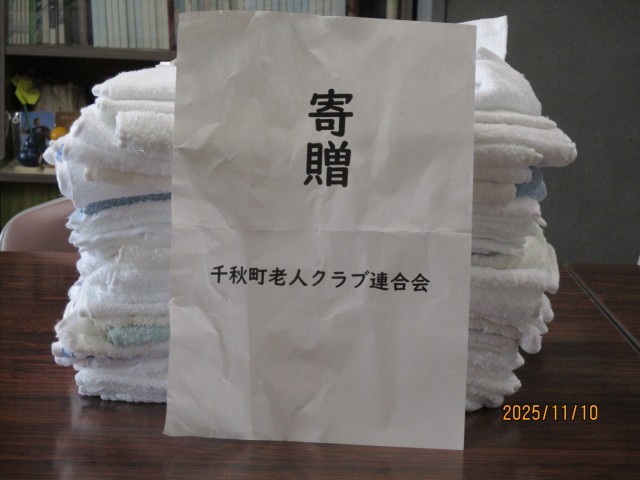 千秋町老人クラブ連合会から雑巾をいただきました。