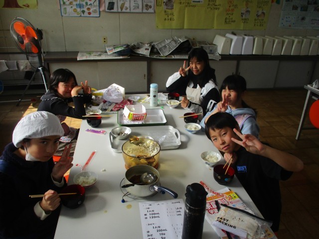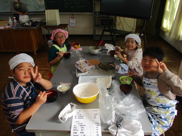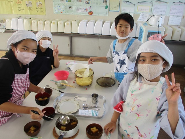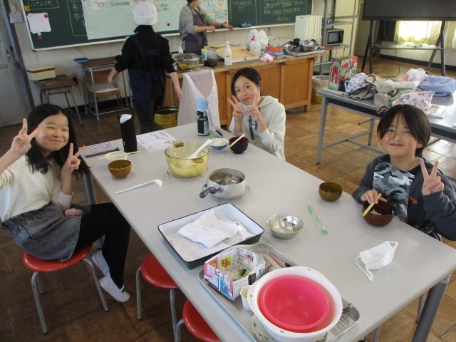 ご飯とみそ汁、美味しくできました。みんな大満足な表情でした。