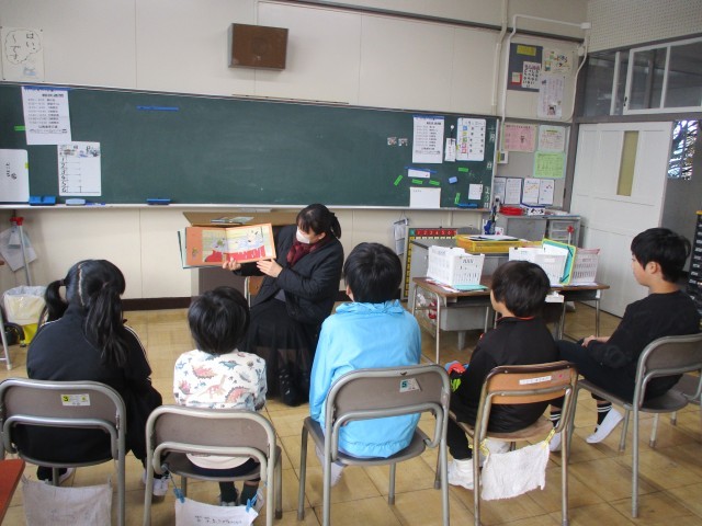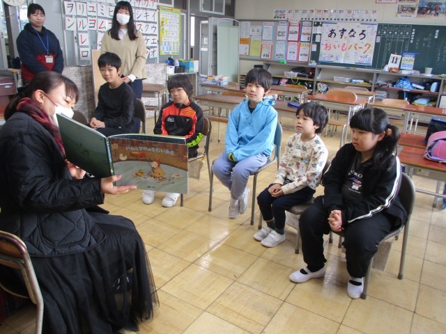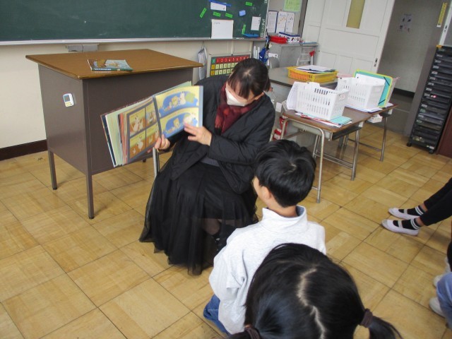今日は、バムとケロの寒い朝を読んでいただきました。登場人物と同じ呼び方をされる子が興味津々で見ていました。