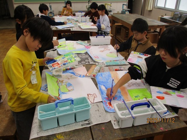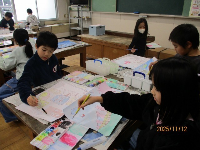 以前描いた絵に絵の具で色を塗りました。今回は薄く色づけから始めます。水彩画らしい、ちょうどいい色になりました。