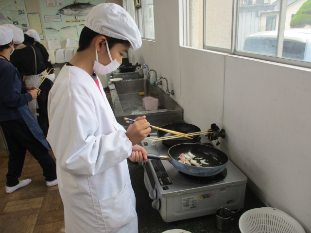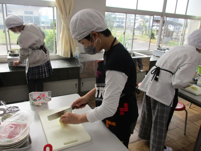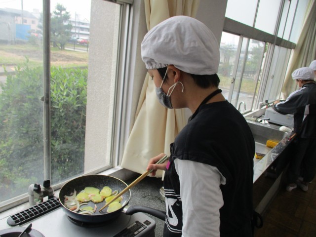 今日は、家庭科の授業でベーコンポテトを作りました。ジャガイモの皮をむいたり、玉ねぎを薄切りしたりして調理をしました。班の仲間たちと協力しながらおいしいベーコンポテトを完成させることができました。