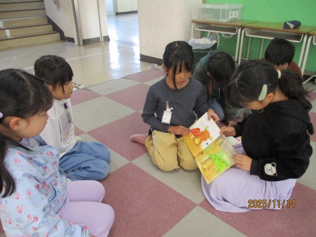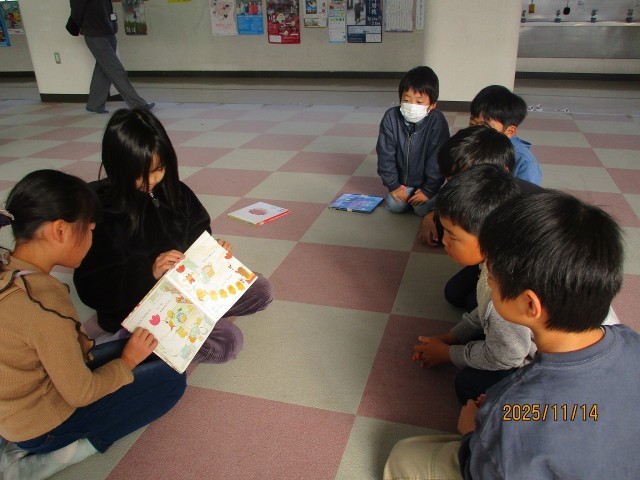 1年2組の子に読み聞かせをしました。読み方に工夫があり、おもしろかったです。