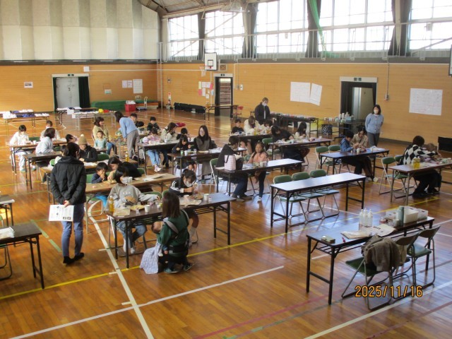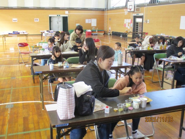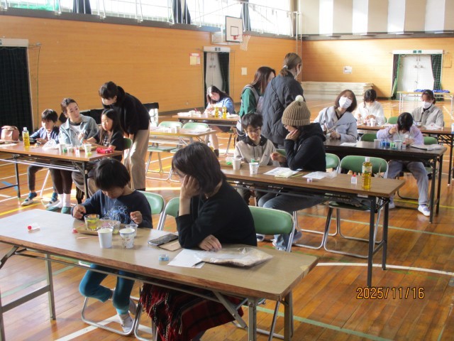 千秋小学校屋内運動場にて「親子で作ろう フォトクリップカラーサンド」が行われました。