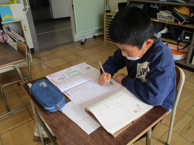 今日の書写の時間には、書写ノートやプリントに硬筆の練習をしました。