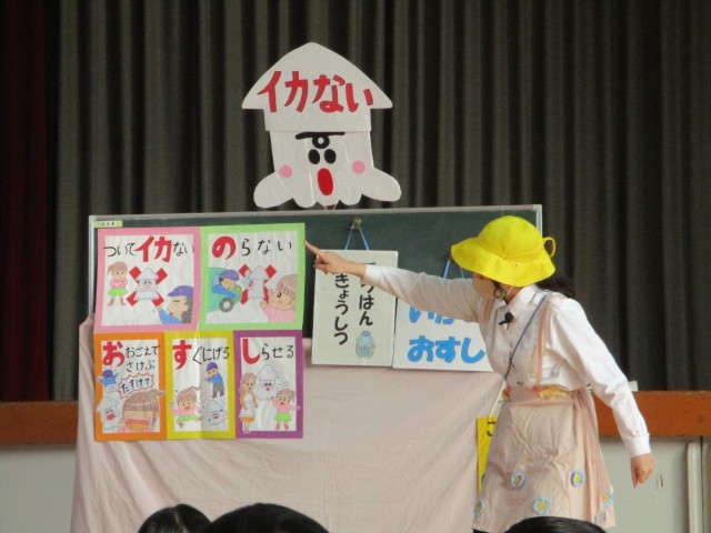 「いかのおすし」について一宮警察署の方からお話をしていただきました。劇も入っていて分かりやすく、興味をもって学習することができました。