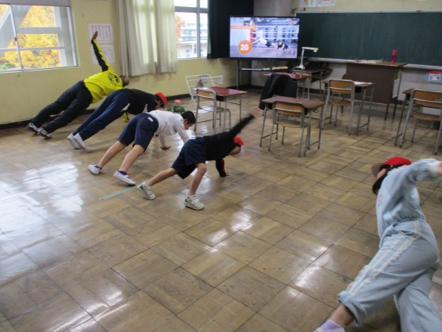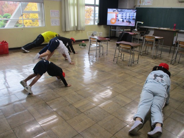 体育の準備運動として子供用の体幹トレーニングをがんばっています。低学年の子もだんだん慣れてきて、上手に取り組めるようになってきました。