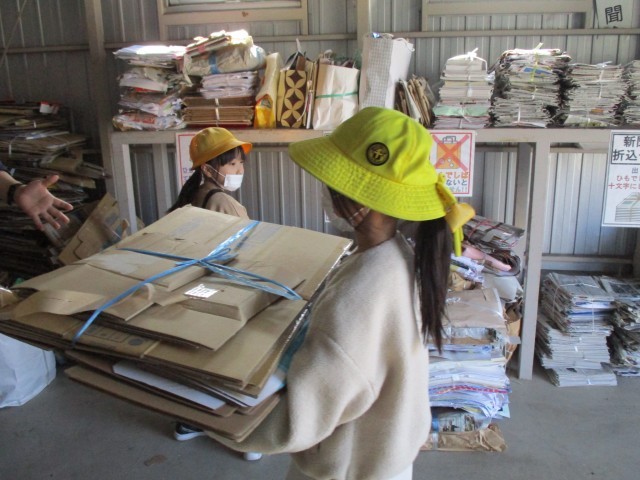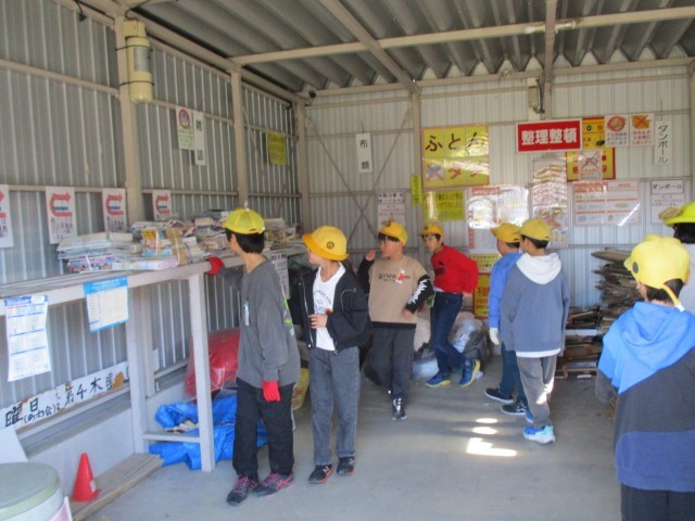 総合の時間に「資源回収」を行いました。南佐野の資源回収場で資源ごみの分別方法を学び、種類ごとに分別をすることができました。