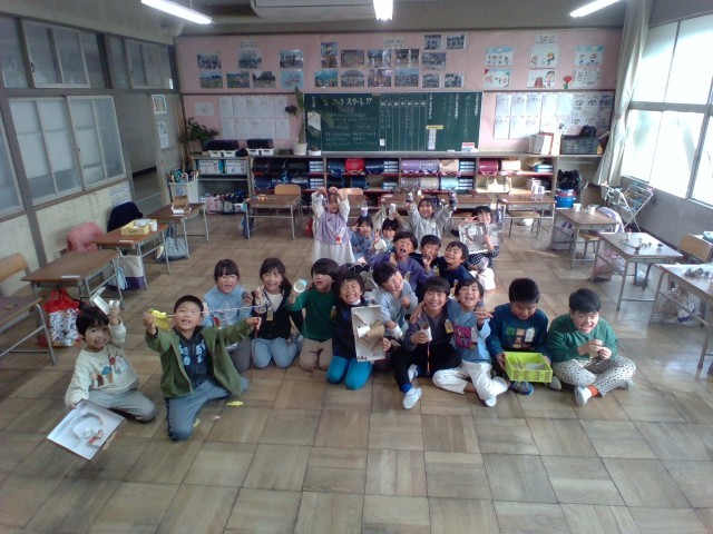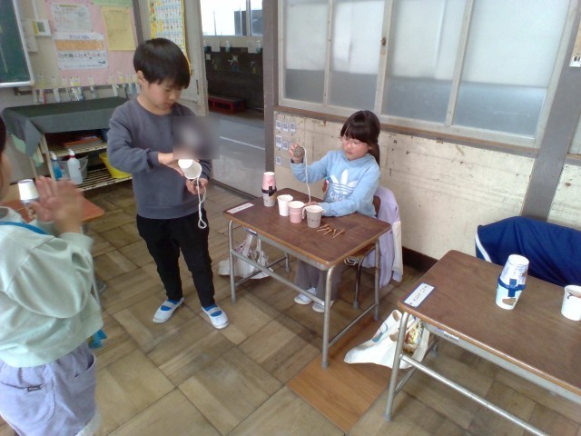 生活科の授業で、秋のおもちゃを作ったので、今日は秋のおもちゃで遊びました。友達のおもちゃで楽しく遊びました。