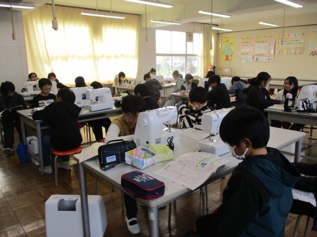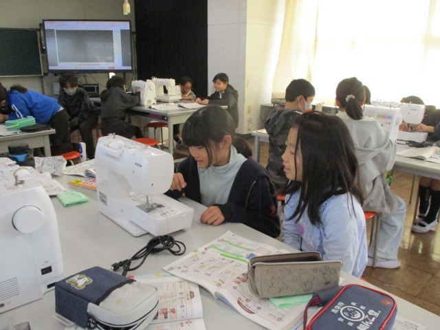 1組ではミシンの使い方を行いました。2組ではふりこの学習をしました。みんなで助け合いながら取り組んでいました。