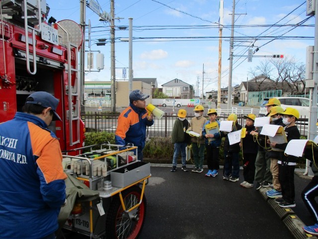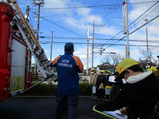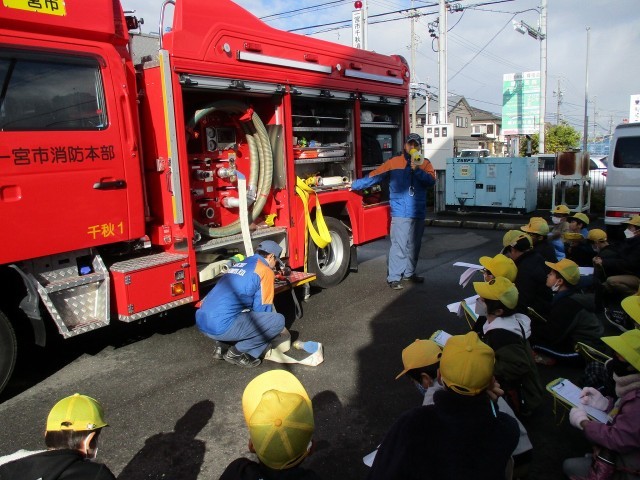 消防車の中に入っている道具や、上に積んであるはしごも見せてもらいました。