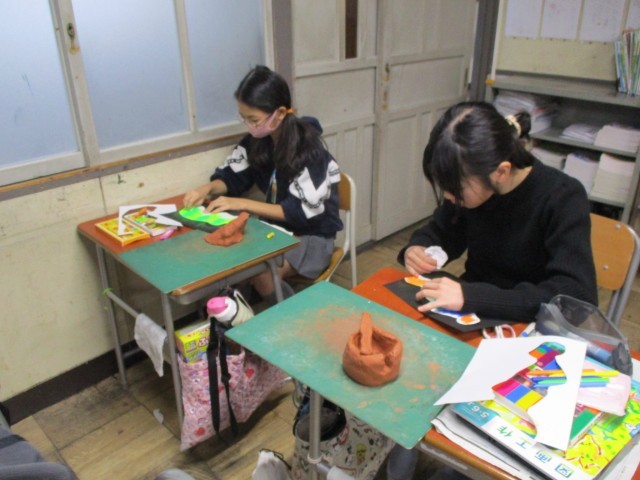 粘土を使ってタイトルにあった作品になるようにつくりました。久しぶりの粘土でみんなとても楽しそうでした。