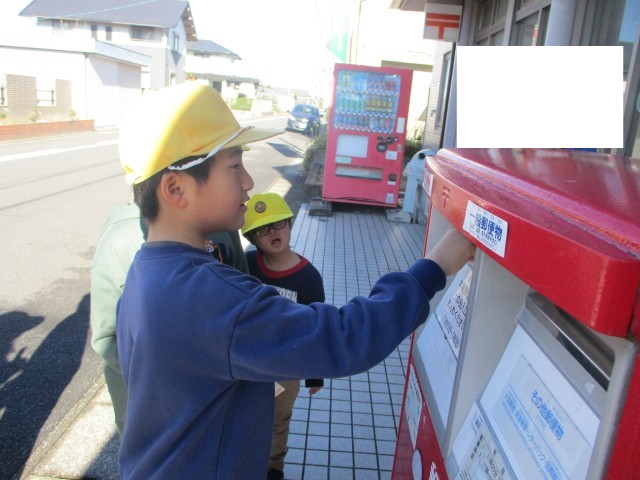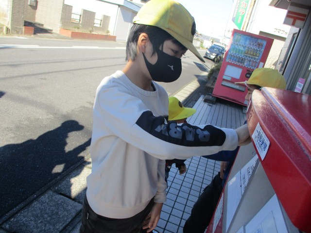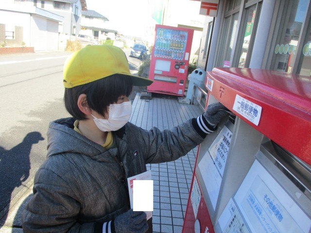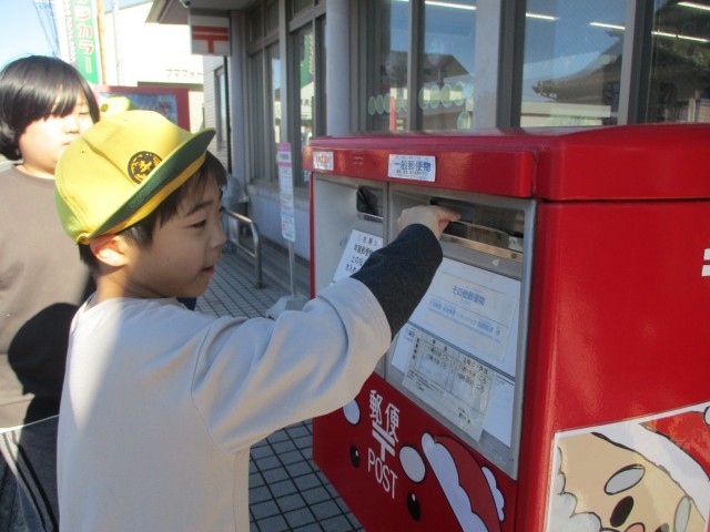 書写の学習で年賀状を書きました。今日はみんなでポストに出しに行きました。