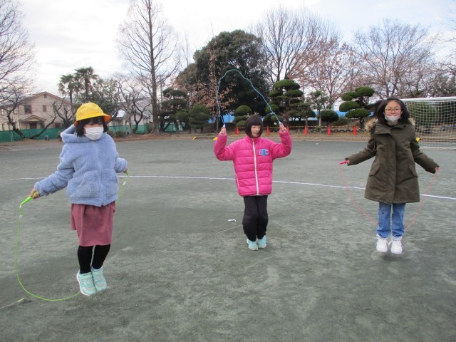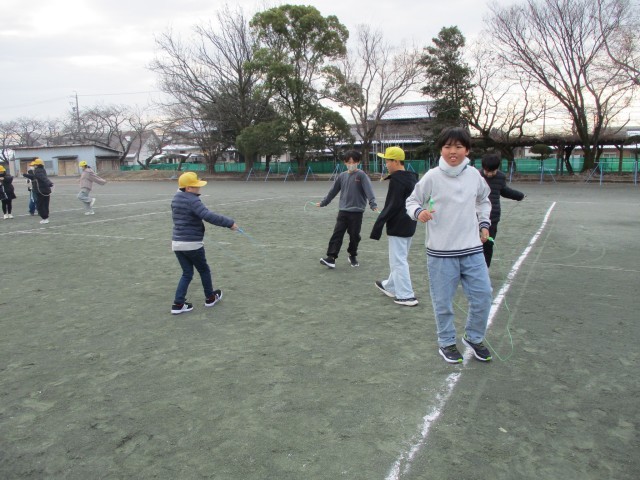 土曜参観で行われる縄跳び集会に向けて、リズム縄跳びを練習しています。