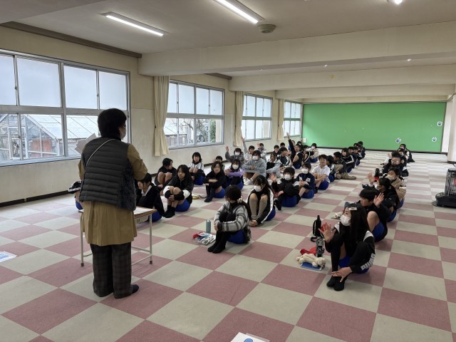 身長と体重をはかった後、養護教諭の話をしっかりと聞きました。
