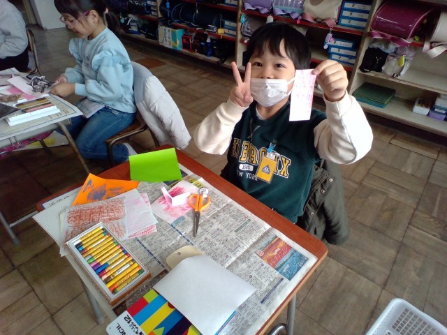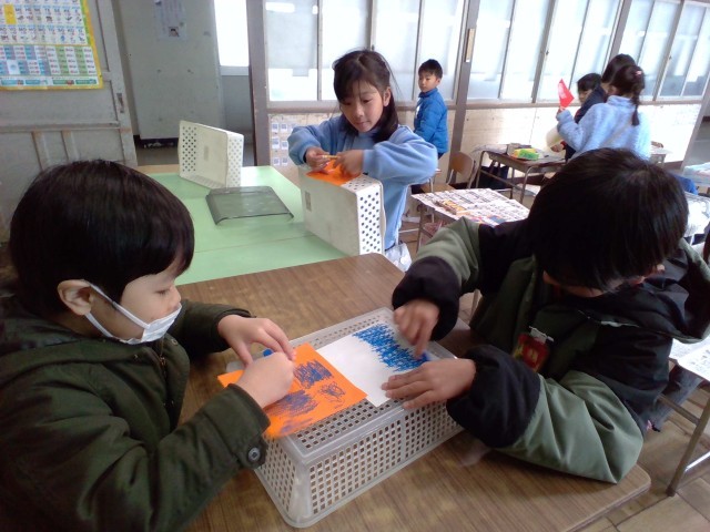 図工「うつしたかたちから」の学習をを交流学級で行いました。先生の指示をよく聞いて、作品作りを行うことができました。できたら、交流学級の先生に進んで見せに行って、たくさん褒めてもらいました。
