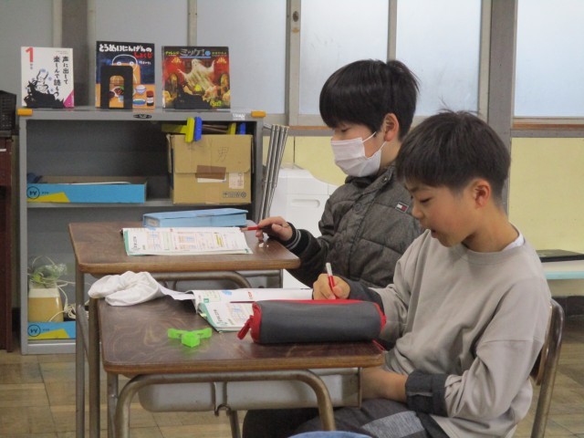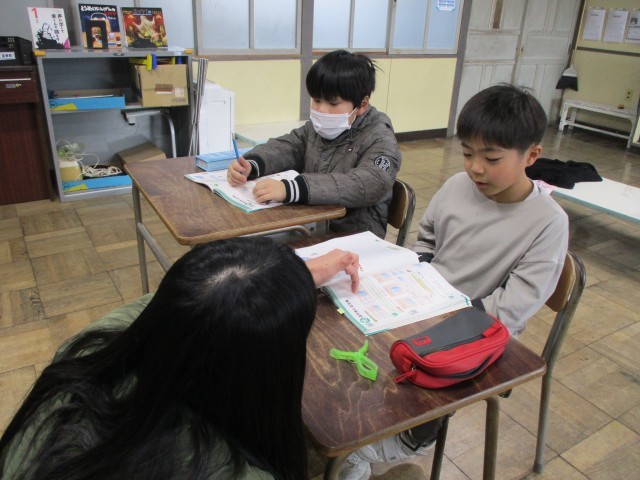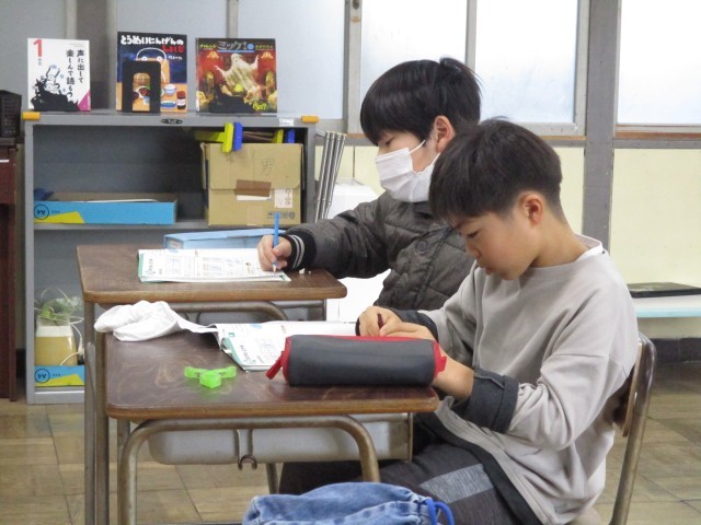 あすなろ内でクラスは違うけれど同じ学年の友達同士で集まり、一緒に学習をしています。