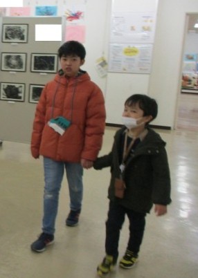 6年生は1年生の子と一緒に回っていました。初めて見学に来る1年生に、過ごし方などを教えてくれています。