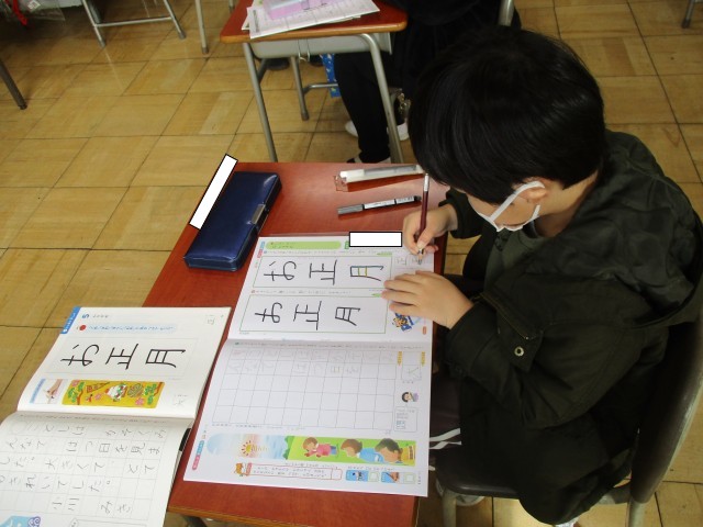 今日の書写は全員硬筆をしました。みんないい姿勢を心がけて字を書いていました。