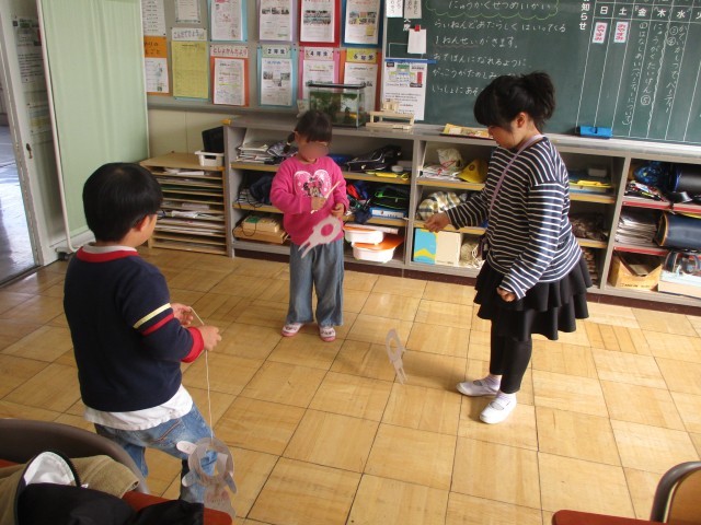 来年度新1年生の体験入学がありました。動物けん玉を作ってみんなで一緒に遊びました。上級生が上手にリードをすることができて、成長を感じました。