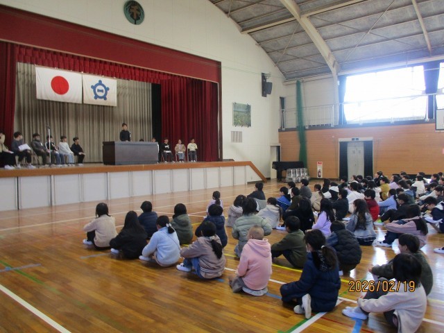 2/19 3年生 児童会役員選挙 公開日 2026/02/19 更新日 2026/02/19 3年 3年生にとっては初めて投票権のある選挙です。演説を真剣に聞いて、千秋小を任せられる1人を選びました。来年度はみなさんも立候補できます。楽しみです。