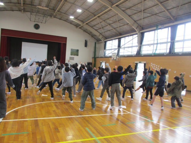 4年生みんなで6年生を送る会の練習をしました。ダンスや呼びかけをがんばりました。