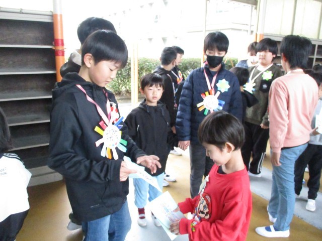 入場前に1年生からすてきなメッセージカードをもらい、嬉しそうな様子が見られました。