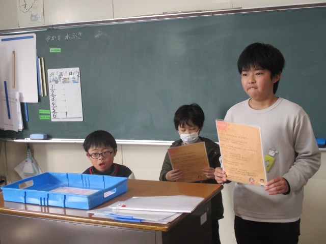 朝の会の司会をがんばっています。1年生も練習を重ねて、役割を果たすことができるようになってきています。