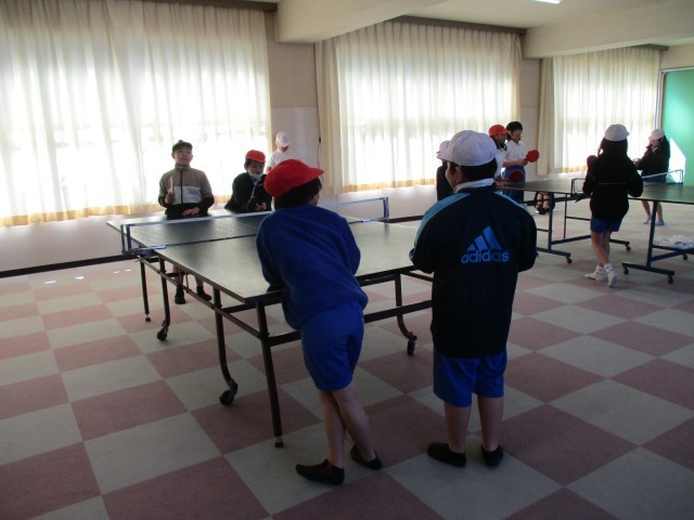 体育の授業で卓球をしました。卓球が大好きな児童にとっても、卓球が初体験の児童にとっても楽しい時間を過ごすことができました。