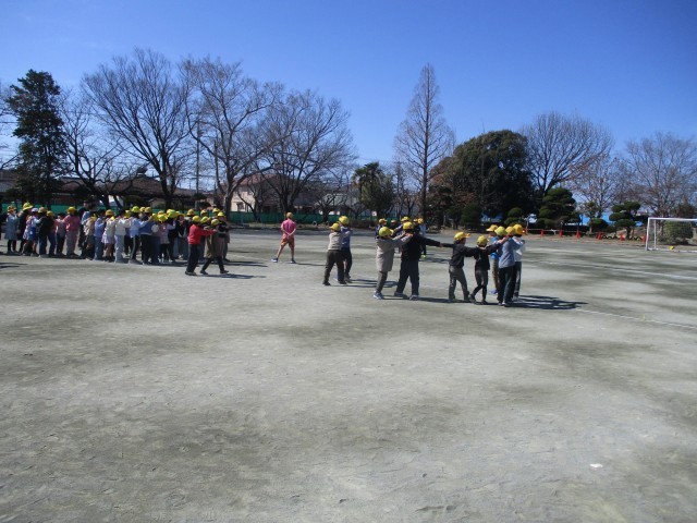 1年間の最後にペアで遊びました。信号ゲームや猛獣狩り、じゃんけん列車を楽しみました。