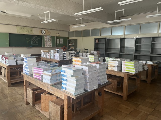 学校では、千秋っ子たちを迎える準備が着々と進んでいます。新しく届いた教科書たちも、自分たちの出番が来るのを今か今かと待っているようです。