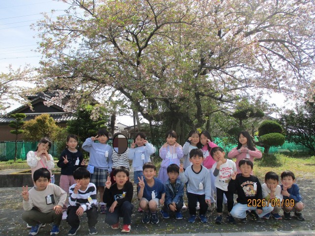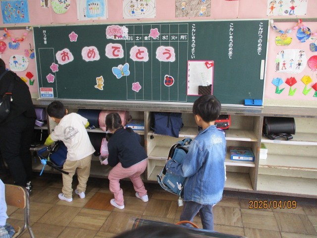 始業式では、良い姿勢で先生の話を聞くことができました。お片づけをしたり、桜の下で写真を撮ったりしました。明日も元気に来てくださいね!
