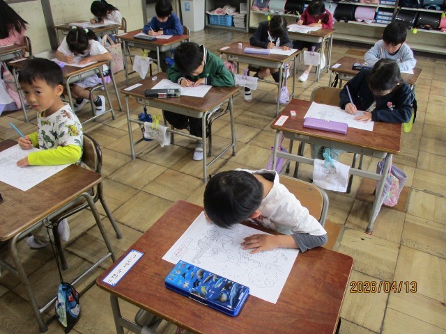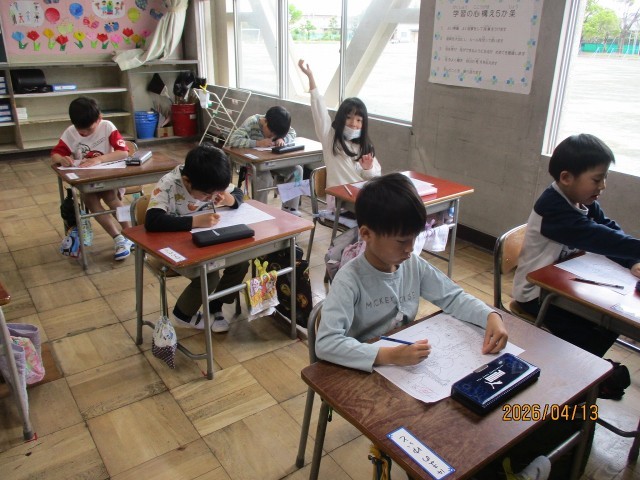 今日は、プリントで線をなぞる練習をしたり、外遊びのルールを勉強したりしました。給食の準備も上手にできました。