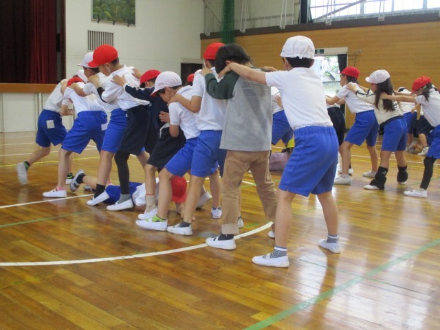 屋内運動場で体ほぐしの運動をいろいろなゲームで楽しみました。