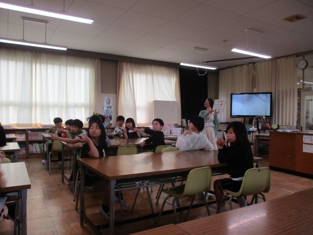 図書館の使い方についてのオリエンテーションがありました。学校司書から本の分類についての話を聞いた後、クイズに答えて本の場所を覚えました。これからもたくさん本を読みましょうね。