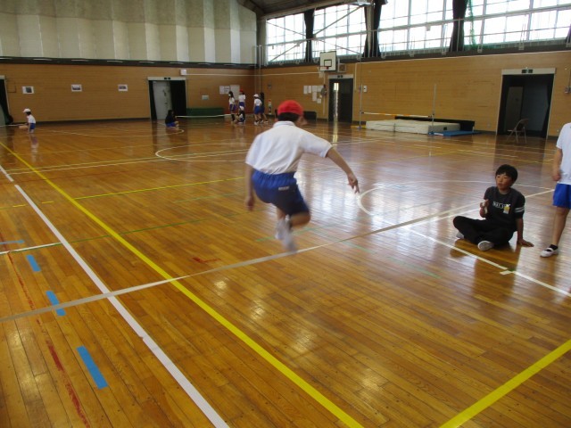 走り高跳びの練習をしています。