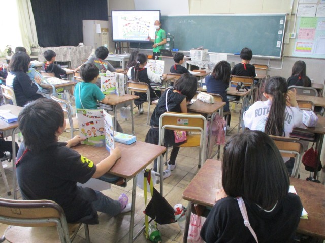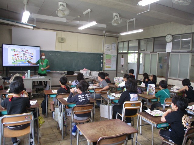3年生からはALTの先生がいないときにも英語の授業があります。今日は世界のあいさつについて学習しました。