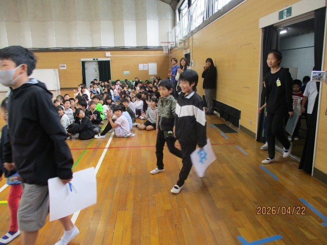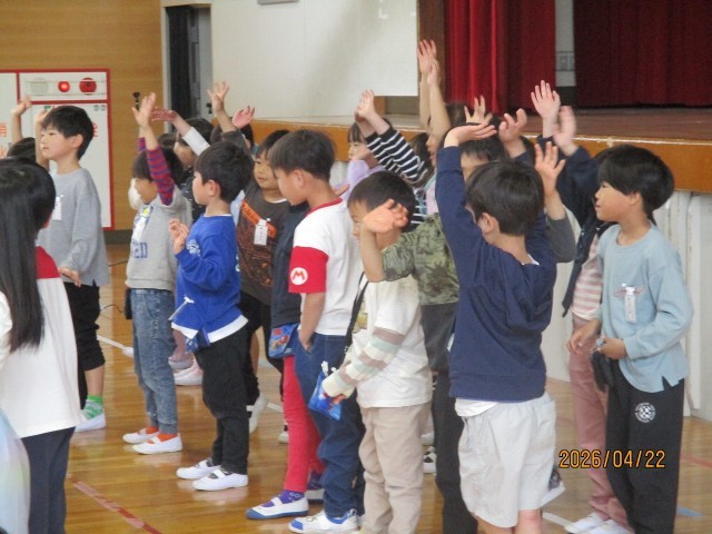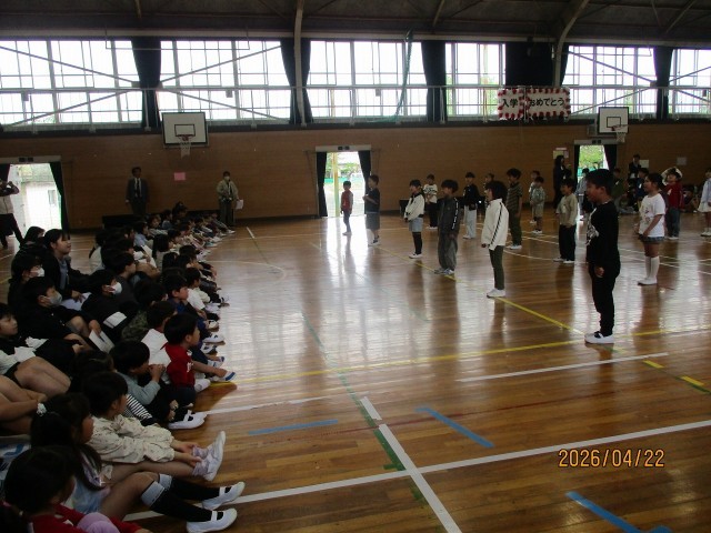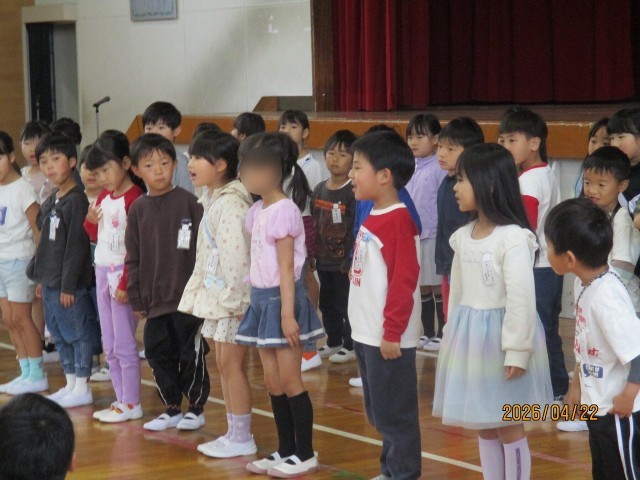 1年生を迎える会では、各学年の出し物を楽しみました。お礼の言葉も上手に言えました。