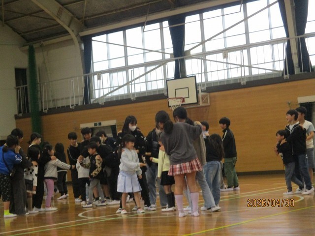 1・6年生でペア遊びをしました。ペアで写真を撮ったり、じゃんけん列車やもうじゅう狩りをしました。