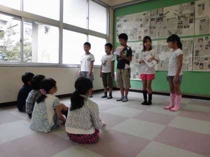 2組では、運動会前から練習してきた、ブックトークを1年生に行いました。緊張しつつも、3年生らしく元気に行えました。